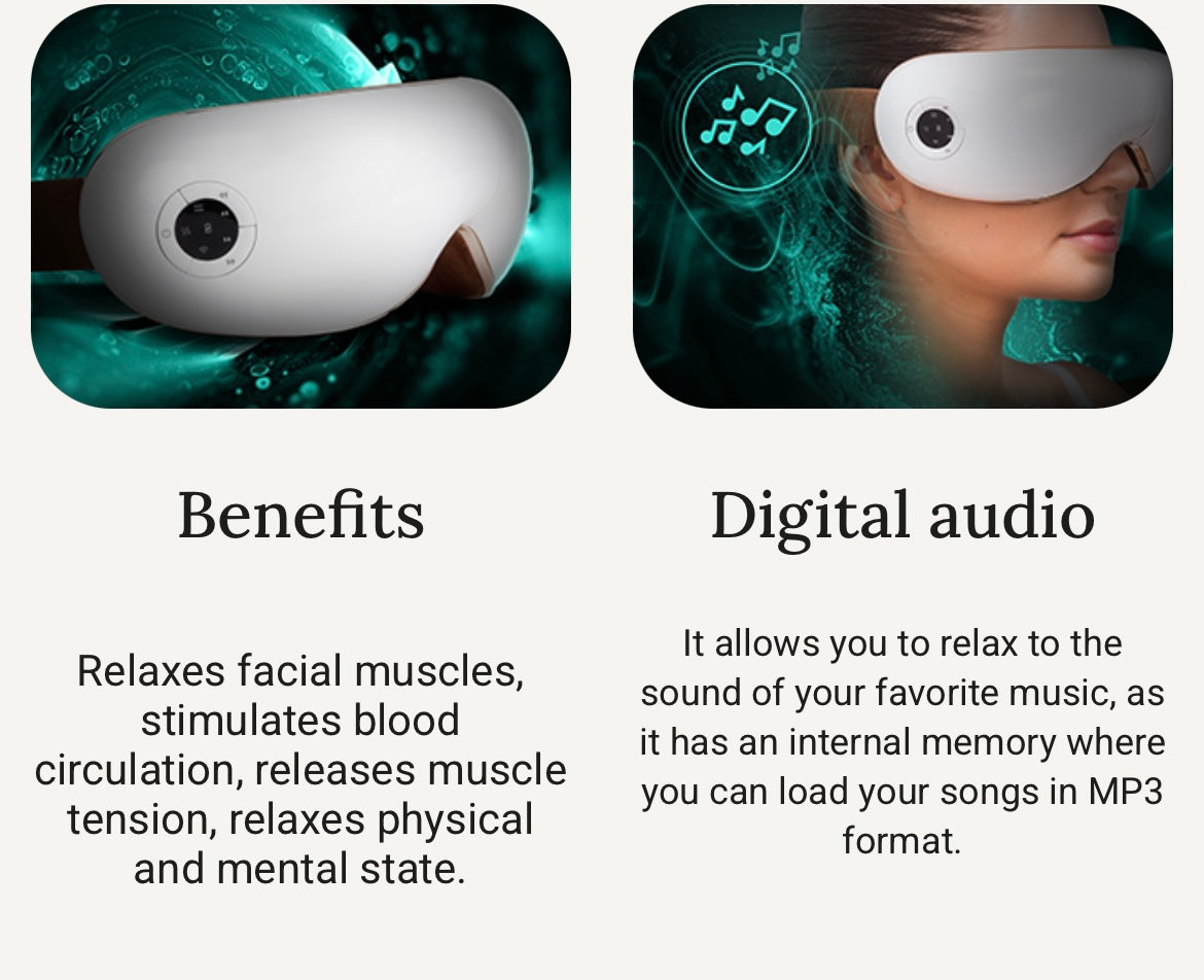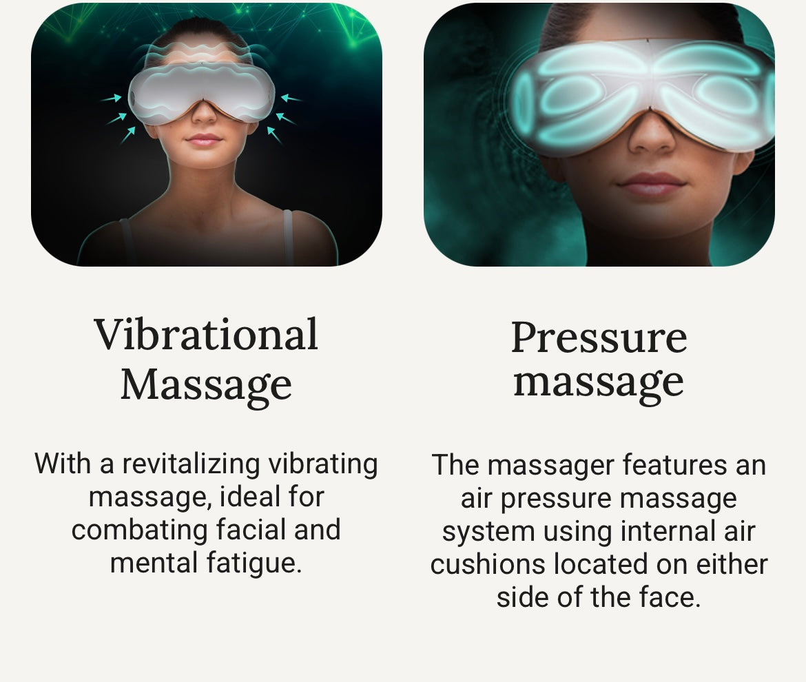 Smart heat and air pressure work together to relieve eye strain, reduce puffiness, and help you unwind after a long day. Experience instant relaxation for your eyes and mind.